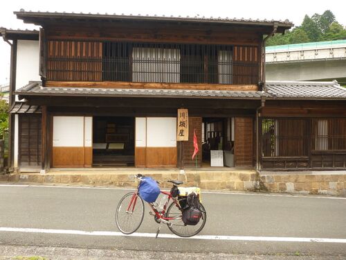 星の巡礼・東海道53次自転車ぶらぶら旅500km』 <東海道53次の一里塚跡をたどりながら日本橋に向かう> 23 ■25・日坂宿 ② 坂の宿場である日坂宿の「宿場西口跡」、「立札場跡」を東へ300mほど進むと「旅籠・川坂屋」がある。 日坂宿 「旅籠・川…