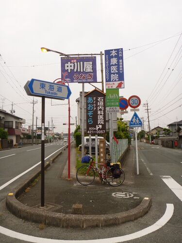 『星の巡礼・東海道53次自転車ぶらぶら旅500km』 <東海道53次の一里塚跡をたどりながら日本橋に向かう> 20 ■29・浜松宿-② ▲《東海道53次 浜松宿―自転車の旅・第7日目舎営地を出発》 2016年5月28日 7日目・朝5時浜松宿出発 宿泊先の娘宅をあとにして…